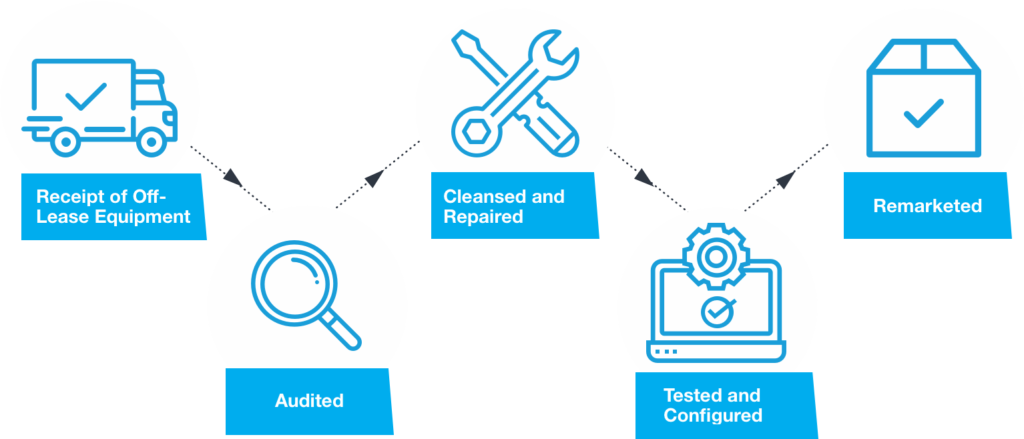 After equipment comes off lease, it is processed through our trusted technology refurbishment center. All equipment is received, audited, and repaired by certified technicians following Insight quality standards.